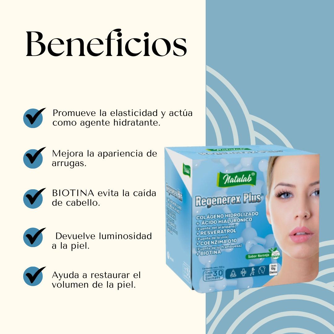 • Colágeno hidrolizado + Ácido Hialurónico + Biotina + Q10