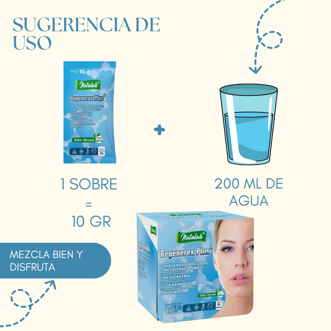 - Colágeno hidrolizado + Ácido Hialurónico + Biotina + Q10